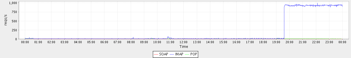 Host zm05.stanford.edu: Mailboxd: Request Rate by Client Protocol