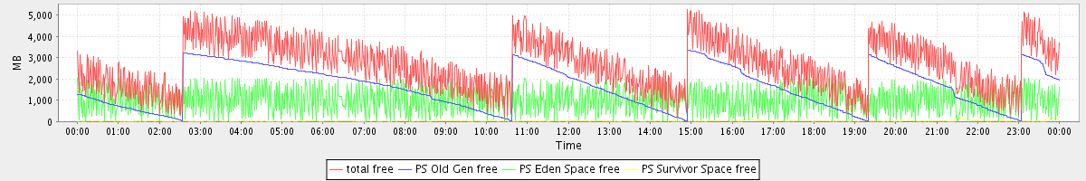 avg(total free) = 2679.58 avg(PS Old Gen free) = 1633.87 avg(PS Eden Space free) = 1019.26 avg(PS Survivor Space free) = 26.45