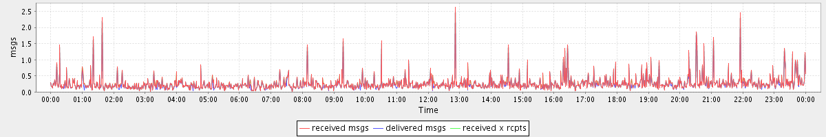 avg(received msgs) = 0.26 avg(delivered msgs) = 0.25 avg(received x rcpts) = 0.26