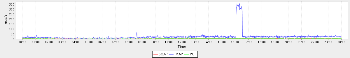 Host zm03.stanford.edu: Mailboxd: Request Rate by Client Protocol