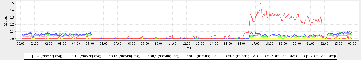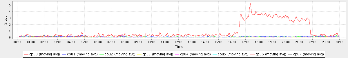 avg(cpu0) = 1.70 avg(cpu1) = 1.05 avg(cpu2) = 0.96 avg(cpu3) = 0.45 avg(cpu4) = 0.33 avg(cpu5) = 0.29 avg(cpu6) = 0.67 avg(cpu7) = 0.28