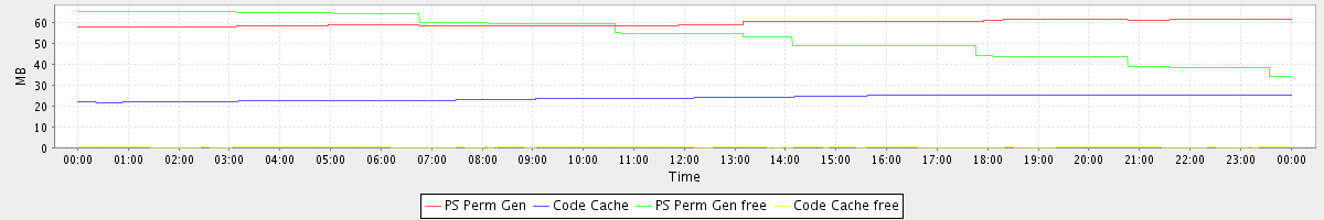 avg(PS Perm Gen) = 59.50 avg(Code Cache) = 23.81 avg(PS Perm Gen free) = 53.78 avg(Code Cache free) = 0.22
