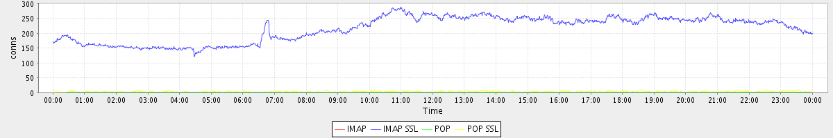 avg(IMAP) = 0.00 avg(IMAP SSL) = 216.32 avg(POP) = 0.01 avg(POP SSL) = 3.61