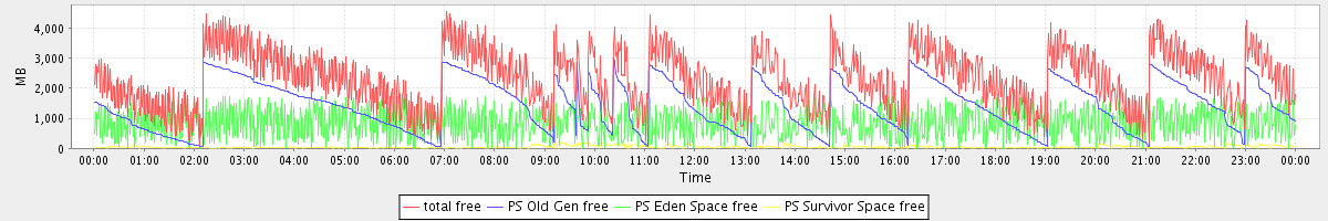 avg(total free) = 2317.48 avg(PS Old Gen free) = 1426.09 avg(PS Eden Space free) = 843.03 avg(PS Survivor Space free) = 48.36