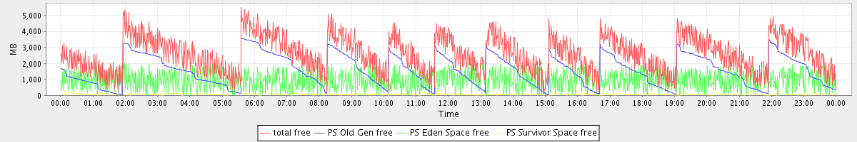 avg(total free) = 2590.55 avg(PS Old Gen free) = 1556.14 avg(PS Eden Space free) = 965.12 avg(PS Survivor Space free) = 69.29