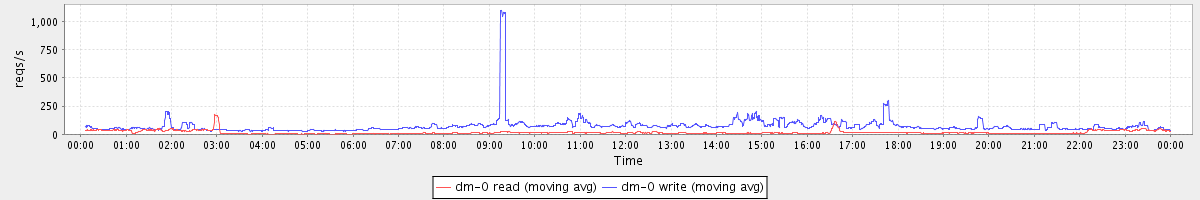 avg(dm-1 read) = 1476.29 avg(dm-1 write) = 109.38