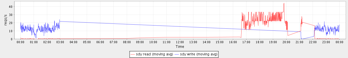 avg(sda read) = 1.43 avg(sda write) = 2.80