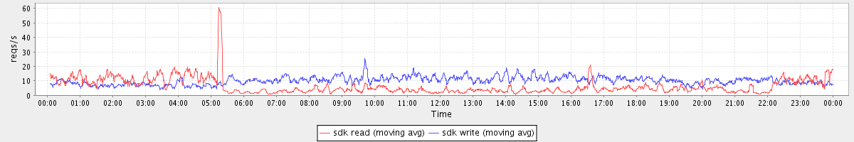 avg(sdk read) = 92.53 avg(sdk write) = 135.21