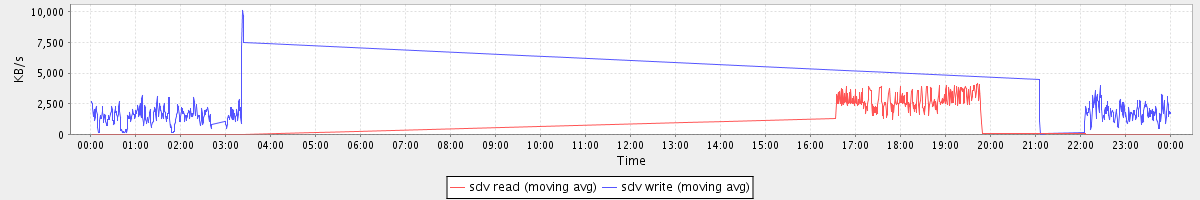 avg(sda read) = 19.16 avg(sda write) = 46.63