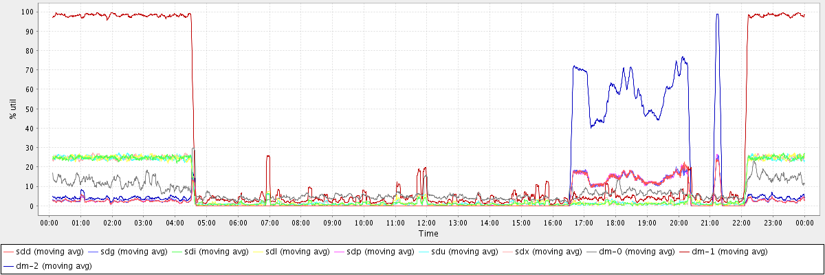 avg(dm-0 read) = 13.74 avg(dm-0 write) = 37.76