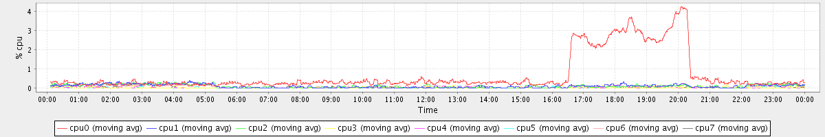 avg(cpu0) = 0.06 avg(cpu1) = 0.04 avg(cpu2) = 0.03 avg(cpu3) = 0.00 avg(cpu4) = 0.00 avg(cpu5) = 0.00 avg(cpu6) = 0.02 avg(cpu7) = 0.00