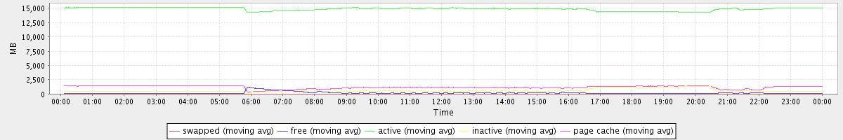 avg(swapped) = 10.27 avg(free) = 170.95 avg(active) = 14875.33 avg(inactive) = 622.46 avg(page cache) = 1177.46