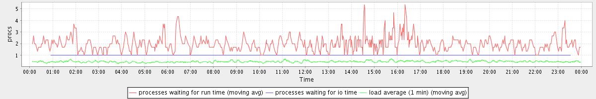avg(processes waiting for run time) = 0.43 avg(processes waiting for io time) = 0.01 avg(load average (1 min)) = 0.44