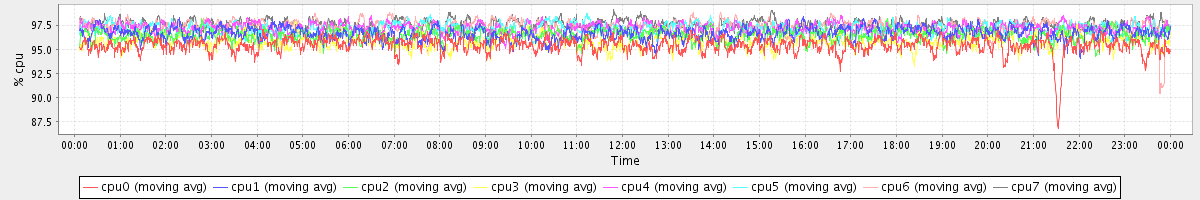 avg(cpu0) = 95.41 avg(cpu1) = 96.64 avg(cpu2) = 96.48 avg(cpu3) = 95.81 avg(cpu4) = 97.14 avg(cpu5) = 97.17 avg(cpu6) = 97.33 avg(cpu7) = 97.48