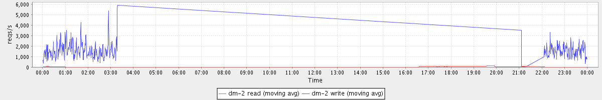 avg(dm-2 read) = 15.21 avg(dm-2 write) = 352.97