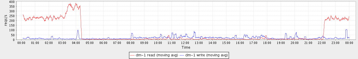 avg(dm-1 read) = 1948.62 avg(dm-1 write) = 75.40