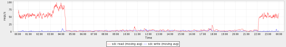 avg(sda read) = 23.09 avg(sda write) = 46.72