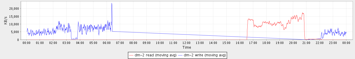 avg(dm-2 read) = 18.74 avg(dm-2 write) = 493.31