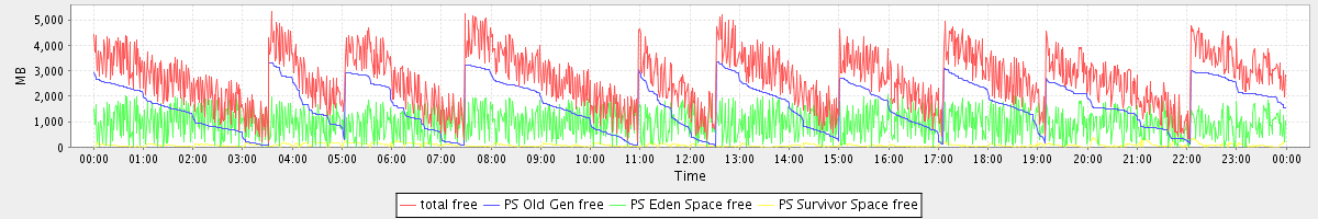 avg(total free) = 2676.65 avg(PS Old Gen free) = 1646.15 avg(PS Eden Space free) = 955.01 avg(PS Survivor Space free) = 75.49