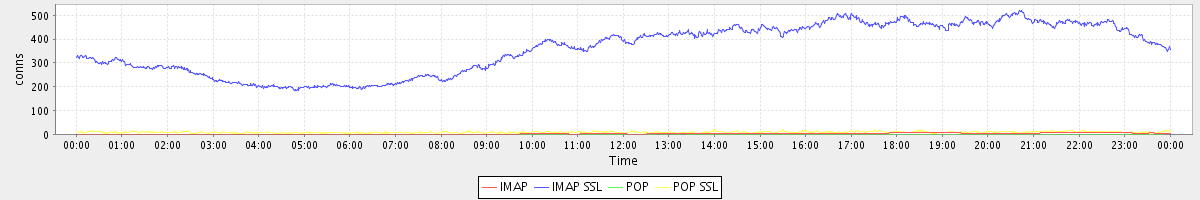 avg(IMAP) = 3.04 avg(IMAP SSL) = 360.64 avg(POP) = 0.13 avg(POP SSL) = 8.54