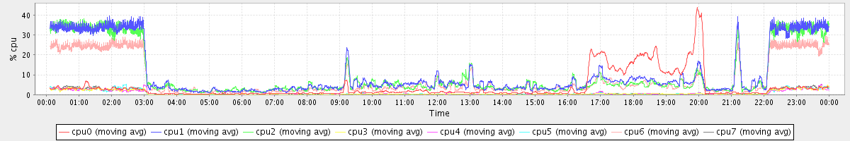 avg(cpu0) = 3.97 avg(cpu1) = 10.85 avg(cpu2) = 10.25 avg(cpu3) = 0.75 avg(cpu4) = 0.72 avg(cpu5) = 0.81 avg(cpu6) = 7.82 avg(cpu7) = 0.89