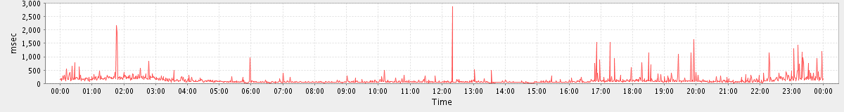 avg(FolderActionRequest.delete) = 3827.00 avg(GetMiniCalRequest) = 1373.19 avg(AutoCompleteGalRequest) = 1127.24 avg(ConvActionRequest.delete) = 636.83 avg(SearchGalRequest) = 2190.92 avg(GetFreeBusyRequest) = 5250.00 avg(FolderActionRequest.empty) = 8864.13 avg(SyncGalRequest) = 114081.74 avg(BackupRequest) = 246976.50 avg(GetQuotaUsageRequest) = 2467.00