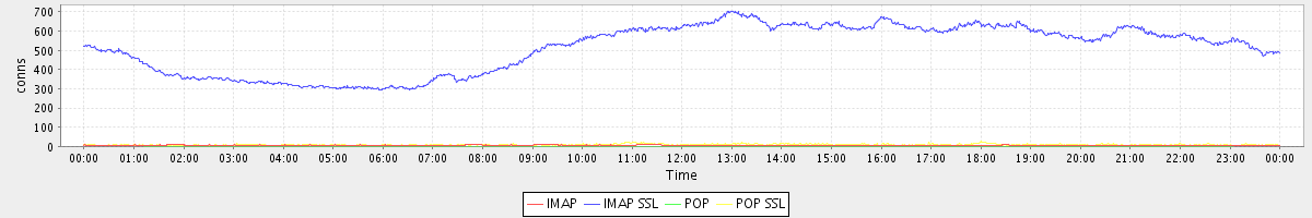 Host zm01.stanford.edu: Mailboxd: Active Connections by Client Protocol