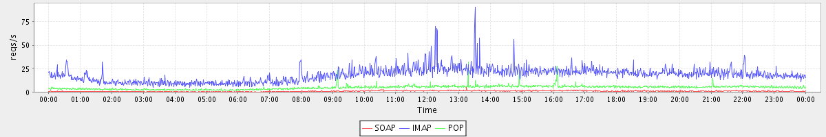 Host zm01.stanford.edu: Mailboxd: Request Rate by Client Protocol