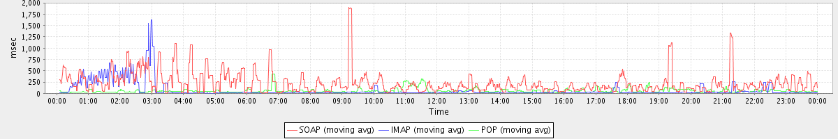 Host zm01.stanford.edu: Mailboxd: Response Time by Client Protocol