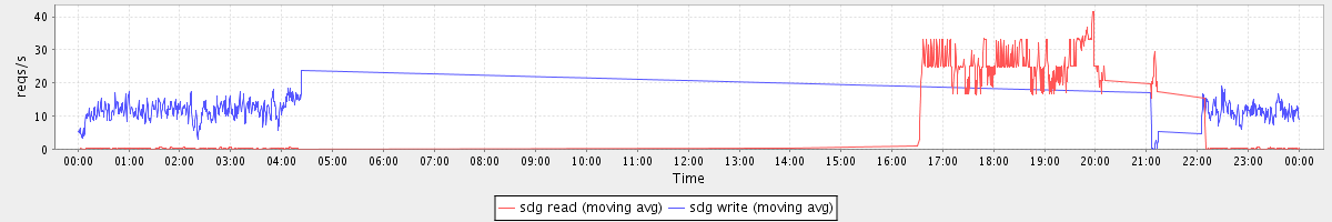 avg(sda1 read) = 18.91 avg(sda1 write) = 41.96