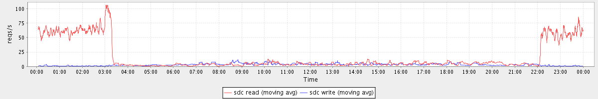 avg(sda read) = 21.04 avg(sda write) = 44.03
