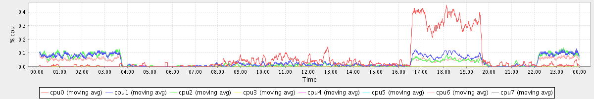 avg(cpu0) = 0.06 avg(cpu1) = 0.04 avg(cpu2) = 0.03 avg(cpu3) = 0.00 avg(cpu4) = 0.00 avg(cpu5) = 0.00 avg(cpu6) = 0.02 avg(cpu7) = 0.00