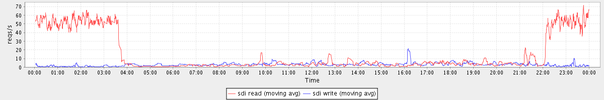 avg(sda read) = 1.28 avg(sda write) = 2.76