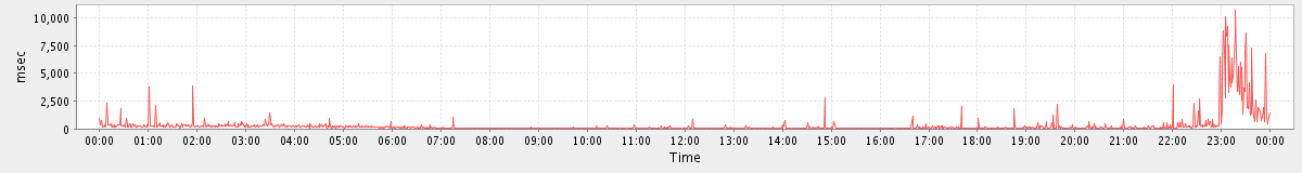 avg(ModifyAppointmentRequest) = 668.92 avg(SendMsgRequest) = 491.24 avg(ImportAppointmentsRequest) = 3372.00 avg(ConvActionRequest.delete) = 2320.83 avg(SearchGalRequest) = 4436.00 avg(MaintainTablesRequest) = 300358.00 avg(FolderActionRequest.empty) = 8159.03 avg(SyncGalRequest) = 113472.43 avg(BackupRequest) = 268709.50 avg(GetQuotaUsageRequest) = 2447.00