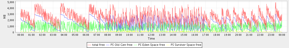 avg(total free) = 2500.60 avg(PS Old Gen free) = 1501.89 avg(PS Eden Space free) = 888.02 avg(PS Survivor Space free) = 110.69