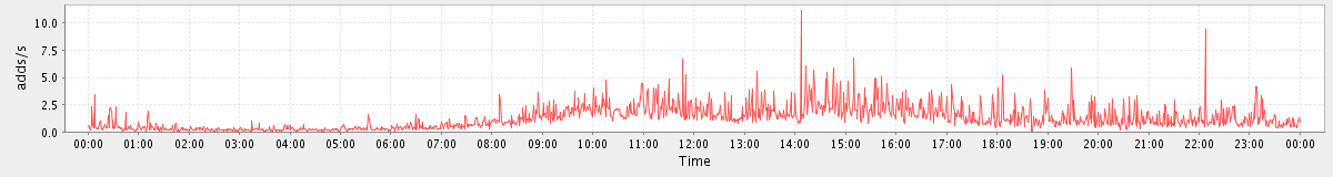 Host zm01.stanford.edu: Mailboxd: Mailbox Add Rate (Delivery Rate)