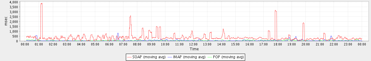 Host zm01.stanford.edu: Mailboxd: Response Time by Client Protocol