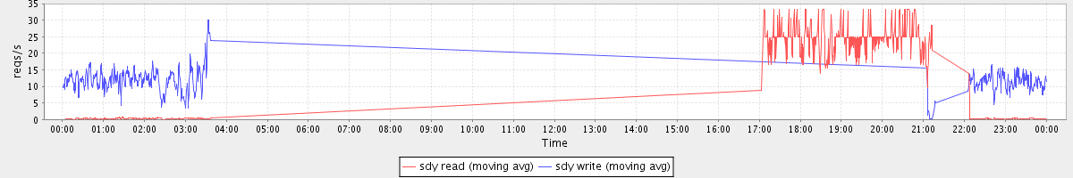 avg(sdb read) = 11.11 avg(sdb write) = 16.47