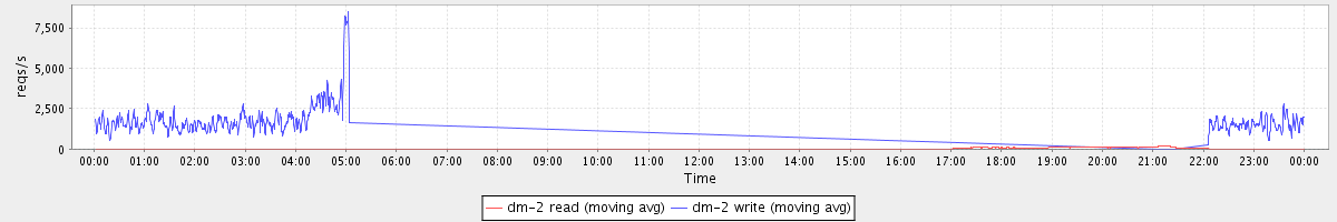 avg(dm-2 read) = 19.55 avg(dm-2 write) = 528.39
