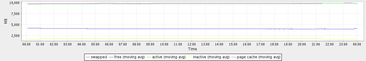 avg(swapped) = 0.00 avg(free) = 4035.29 avg(active) = 9755.13 avg(inactive) = 1752.15 avg(page cache) = 9873.37