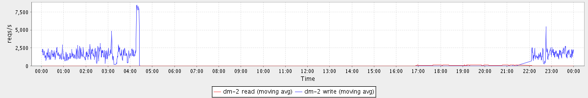avg(dm-2 read) = 16.87 avg(dm-2 write) = 458.68