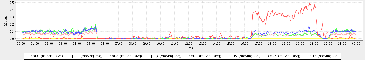 avg(cpu0) = 0.08 avg(cpu1) = 0.05 avg(cpu2) = 0.04 avg(cpu3) = 0.00 avg(cpu4) = 0.00 avg(cpu5) = 0.00 avg(cpu6) = 0.03 avg(cpu7) = 0.00