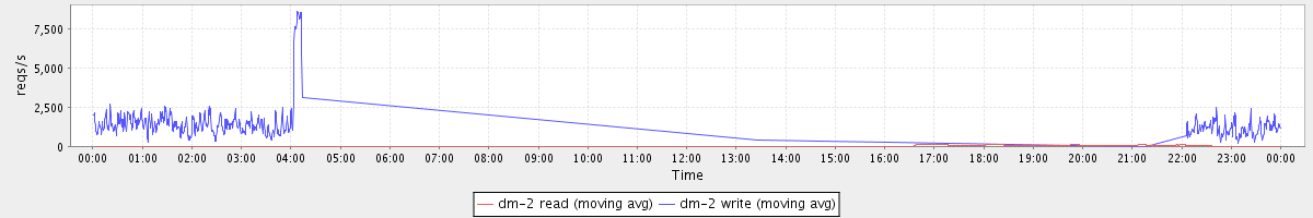 avg(dm-2 read) = 18.82 avg(dm-2 write) = 383.50