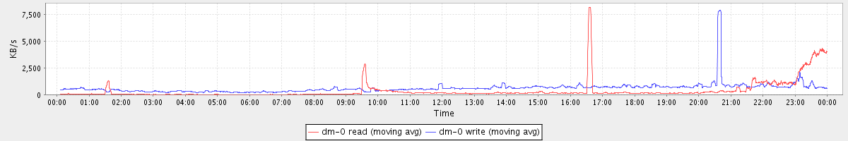 avg(dm-0 read) = 20.76 avg(dm-0 write) = 85.64