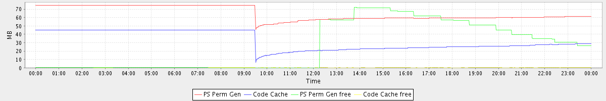 avg(PS Perm Gen) = 64.89 avg(Code Cache) = 32.01 avg(PS Perm Gen free) = 25.67 avg(Code Cache free) = 0.25