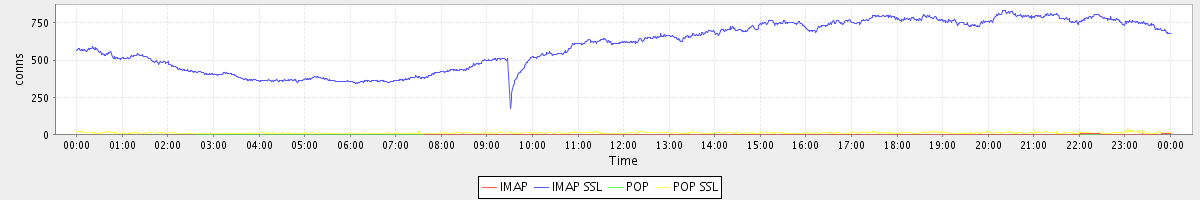 avg(IMAP) = 0.69 avg(IMAP SSL) = 597.65 avg(POP) = 0.16 avg(POP SSL) = 9.80