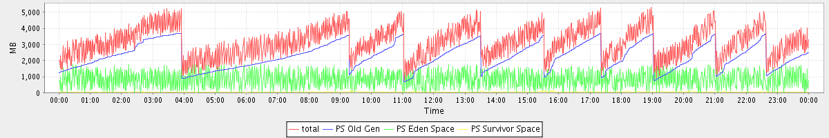avg(total) = 3146.55 avg(PS Old Gen) = 2258.00 avg(PS Eden Space) = 845.02 avg(PS Survivor Space) = 43.53