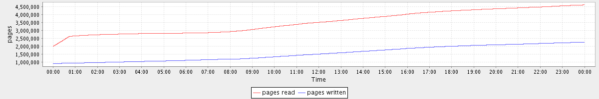 avg(pages read) = 3535979.86 avg(pages written) = 1550476.87