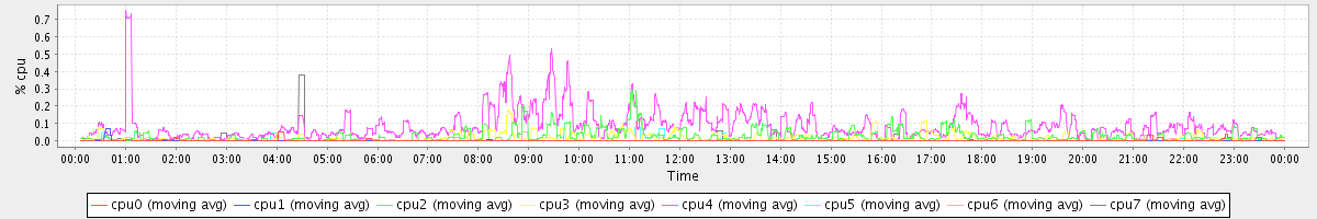 avg(cpu0) = 0.40 avg(cpu1) = 0.28 avg(cpu2) = 0.20 avg(cpu3) = 0.25 avg(cpu4) = 0.18 avg(cpu5) = 0.13 avg(cpu6) = 0.11 avg(cpu7) = 0.10