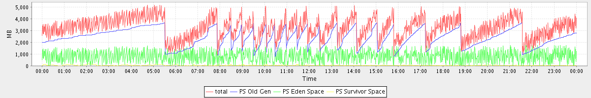 avg(total) = 3261.99 avg(PS Old Gen) = 2399.92 avg(PS Eden Space) = 820.78 avg(PS Survivor Space) = 41.30